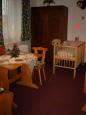 Apartmán 1+1 - 6-lůžkový pokoj a tři přistýlková lůžka v přístěnku, vybavená kuchyňka, TV/SAT. Sociální zařízení, 2xWC. Vlastní ručníky - poskytování ručníků není součástí ceny. Vytápění ústředním topením. Oplocený pozemek, uzavřené parkoviště. Možnost uskladnění kol a lyží. Rekreační poplatek 19Kč/os./den. Obchod a restaurace do 200m.