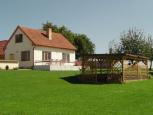 Celý objekt kompletně vybavený pro týdenní i delší pobyty. V případě větší skupiny hostů lze využít ještě další dva objekty, které se nacházejí v sousedství tohoto objektu (celkem ubytování pro 40 osob). Obývací pokoj s posezením u krbových kamen a BTV, možnost 2 přistýlek. Samostatná kuchyně s posezením je plně vybavena - el. sporák, mikrovlnka, rychlovarná konvice, překapávač, lednice a nádobí na počet osob. V poschodí dvě ložnice oddělené chodbičkou (1x4, 1x6 lůžek). V přízemí koupelna se sprchou, 2 umyvadly, WC. Vytápění celé chalupy krbovou vložkou, rozvod teplého vzduchu i do poschodí, zákazníci si topí sami. Velká oplocená zahrada (1500m2). Posezení, zatravněné hřiště na volejbal, pergola s venkovním krbem, nadzemní kruhový bazén, pro děti houpačka a velké pískoviště. Parkování na pozemku. K dispozici je také loďka na rybníku u domu. Možnost uskladnění kol. Obchod a restaurace 5km, hospoda 1km. Součástí ceny není spotřeba energií. Majitelé mohu zajistit balónové lety přímo do domu!