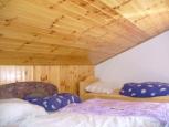 Chatu je možné pronajmout si jako celek pro až 9 osob nebo jednu z jejích dvou částí. Vstup do chaty do společenské místnosti s krbem, rádiem a stoly se židlemi. Tato místnost je společná pro obě části chaty. Část 1: kapacita-5 osob. Ve spodní části je koupelna se sprchou, umyvadlem a WC, kompletně vybavená kuchyňka-sporák se sklokeramickou deskou a troubou, kombinovaná chladnička, rychlovarná konvice. Prostorná jídelna s krbovými kamny, TV. V horní části je částečně oddělená ložnice pro 5 osob. Vytápění krbovými kamny. Část 2:kapacita-4 osoby. Komfortní výbava vč. nového nábytku a sauny. Ve spodní části se nachází nová plně vybavená kuchyňka (vestavěný vařič ze sklokeramiky, rychlovarná konvice, toastovač, vestavěná kombinovaná chladnička), WC, sprcha, umyvadlo, sauna. V horní části je jídelna s TV, prostorná ložnice se skříněmi a 4 postelemi + TV. Elektrické vytápění. Na neoploceném pozemku je k dispozici udržovaný trávník a velké přírodní ohniště, v těsné blízkosti parkoviště a příjezdová cesta. Možnost zapůjčení grilu. Spotřeba el. energie do 50kW v ceně pronájmu. Obchod a restaurace 1km.