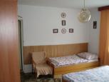 Objekt se skládá ze dvou částí - hlavní chalupa a vejminek, které se zvlášť pronajímají a mají každá vlastní vchod. CHALUPA (13osob, 4 pokoje): V přízemí je kuchyň s plyn. sporákem, teplou vodou a veškerým vybavením - např. překapávač s termoskou na čaj a kávu, žehlička, rychlovarná konvice, chladnička, spíž. Pokoje na spaní v přízemí jsou pro 3 osoby a pro 2 osoby (manželské lůžko), pokoje jsou od sebe oddělené shrnovacími dveřmi. Tyto pokoje jsou vhodné pro rodinu se třemi dětmi. Koupelna s vanou a WC je vedle přes chodbu. Dále je v přízemí velká společenská místnost s TV a satelitem. V podkroví dva pokoje pro 2 + 2 osoby a 4 osoby. Ze 4-lůžkového pokoje vstup na balkon. Pro tyto pokoje je společná sprcha a WC na podlaží. Na chodbě je další vybavená kuchyň s plyn. sporákem a ledničkou.