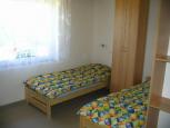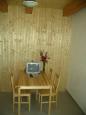 Dům má čtyři oddělené apartmány, každý apartmán má vlastní vchod. V přízemí každého apartmánu 2-lůžk. pokoj s kuchyňským stolem a TV. Sociální zařízení (se sprchou) a kuchyňská linka jsou v chodbičce. U dvou apartmánů je v patře 2-lůžk. pokoj s možností přistýlky a u dalších dvou 3-lůžk. pokoj s možností přistýlky. Kuchyně se zákl. vybavením - nádobí, příbory, rychlovarná konvice, 2-plotýnkový vařič, lednice, mikrovlnka. Topení plynem. Venkovní posezení, přírodní ohniště s posezením, travnaté hřiště na míčové hry, ruské kuželky, dětská prolézačka, relaxační a meditační pyramida. Neoplocený pozemek. Pobyt možný se psem za příplatek 100 Kč/pobyt. Součástí ceny není poskytování povlečení, ručníků a utěrek. Les 100m. Centrum města 400m - obchody, restaurace, vinárna, pošta, lékař, autobusové zastávky.