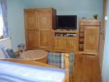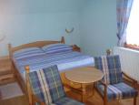 Nekuřácký objekt (v celém zařízení platí přísný zákaz kouření!) po celkové rekonstrukci z roku 2001. Ubytování ve třech podkrovních 2-lůžkových pokojích s vlastním sociálním zařízením (sprcha, WC, umyvadlo). Všechny pokoje jsou vybaveny TV a SAT, videem a chladničkou. V přízemí je další 2-lůžkový pokoj, který umožňuje zvýšit kapacitu ubytování až na 8 osob. Pokoj je bez TV i videa. (vhodné použít jako přistýlku) Sociální zařízení je samostatné – na patře. K dispozici je plně vybavená kuchyň, jejíž součástí je plynový sporák, elektrická horkovzdušná trouba, chladnička, mraznička, myčka nádobí, mikrovlnná trouba, kávovar a varná konvice. V přízemí je k dispozici selská jizba vhodná k příjemnému posezení až pro 18 osob (vhodné také ke stravování) a vybavený bar, kde je možno čepovat sudové pivo (možno zajistit po dohodě s vedoucím penzionu). V objektu je místnost s kulečníkem a krbem (druhá budova) – plně k dispozici. Na pozemku si můžete zahrát zahradní kuželky. Je zde také dětské pískoviště, pyramida k lezení a houpačky. Poklidnou atmosféru si lze zpříjemnit opékáním na venkovním ohništi. V objektu je zavedeno plynové topení. Zpevněná lesní cesta zajišťuje pohodlný dojezd automobilem až k penzionu. Parkování na parkovišti přímo u objektu. Restaurace 3km, obchod 3,5km. Součástí ceny není spotřeba energií!!!